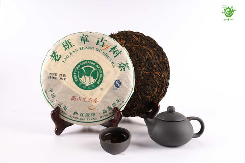 | Gu shu ban zhang green Pu erh cake from 2009 |
